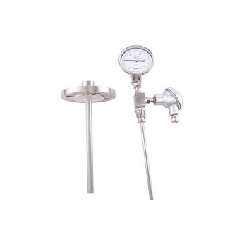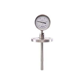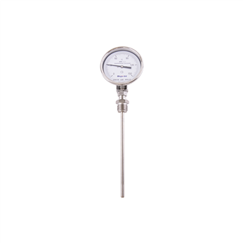 Bimetallic thermometers are designed and manufactured based on the principle of solid thermal expansion. Usually, two metal plates with relatively large differences in expansion coefficients are stacked and welded together to form a bimetallic temperature sensing element. When the temperature changes, different expansion and contraction occur due to the relatively large difference in the coefficient of linear expansion between the two different materials of the bimetallic sheet, resulting in bending deformation of the bimetallic sheet. According to different deformations, different amounts of rotation are generated. The amount of rotation drives the connected shaft, which in turn drives the indicator needle at the other end. This way, the indicator needle can point to the correct reading and indicate the temperature.