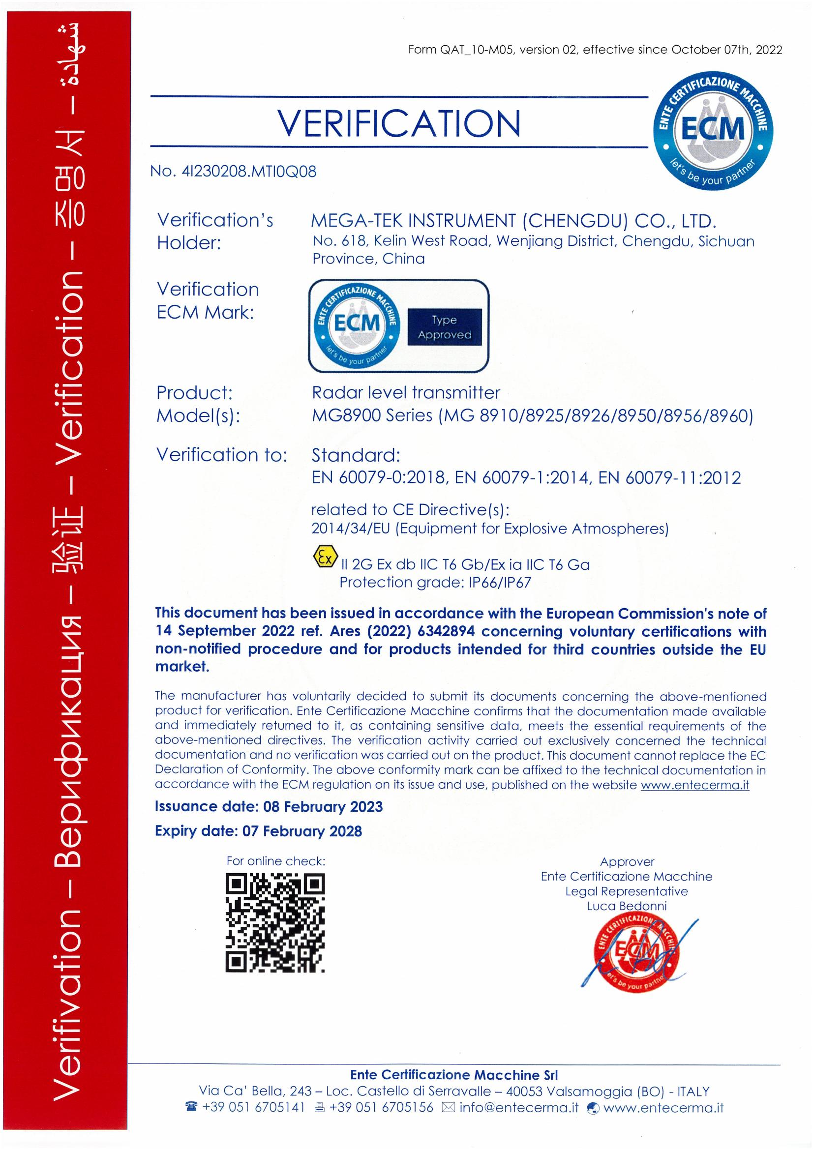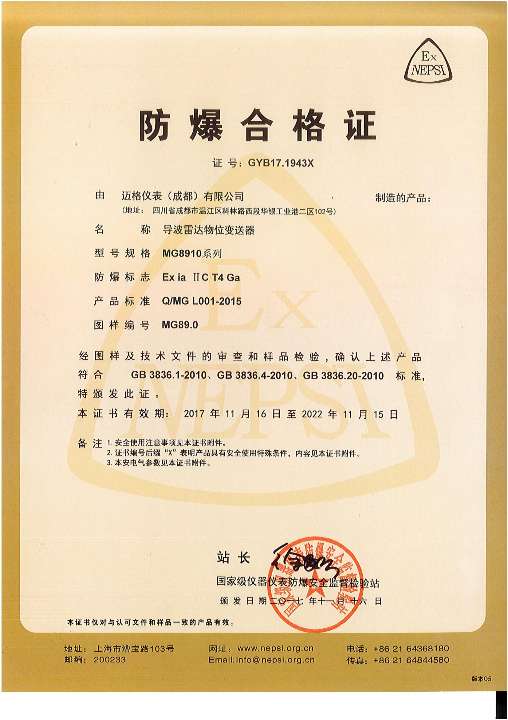 Intrinsically Safe Certificate