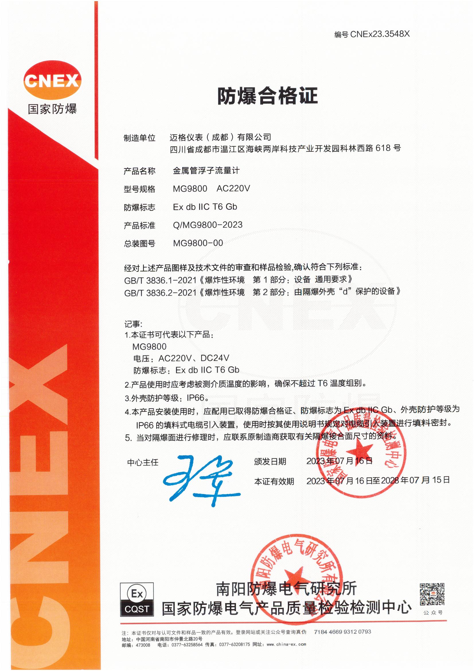 Explosion proof Certificates