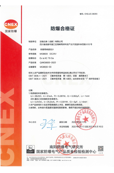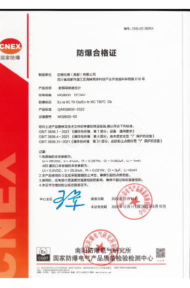 Intrinsically Safe+Dust Explosion-proof Certificate
